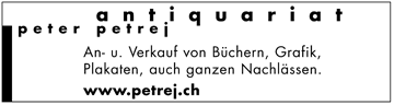 Das Buchantiquariat existiert seit 1993 und ist auf folgende Gebiete Ebenso schätzen und kaufen wir ganze Bibliotheken und komplette Sammlungen aber auch aussergewöhnliche Einzelwerke. Ausserdem sind wir immer an Grafiken, Plakaten und Orig.-Photos und Gemälden interessiert. Die Firma ist Mitglied der «Vereinigung der Buchantiquare u.Kupferstichhändler in der Schweiz», VEBUKU wie auch der ILAB (The international league of antiquarian booksellers). |