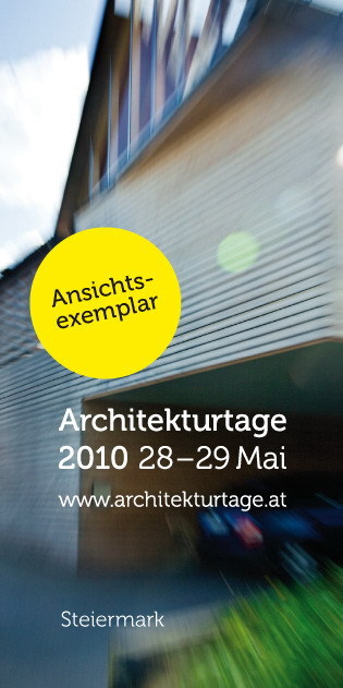 Die Architekturtage 2010 stehen nun unter dem Motto „Ansichtsexemplar – Architektur eins zu eins erleben“ um genau an dem Punkt anzusetzen, wo die Realität sichtbar und Architektur zum Ansichtsexemplar ihrer selbst wird. Das Programm beinhaltet neben „offenen Ateliers“, wo BesucherInnen Einblick in die unmittelbaren Produktionsbedingungen nehmen können auch Baustellenbesichtigungen sowie geführte (Bus)touren zu Projekten in Graz und in der Steiermark.